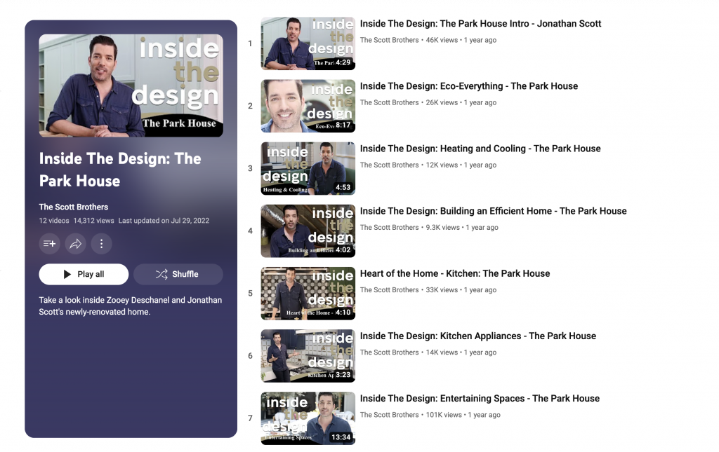 Hired to coordinate, organize, write, as well as record and edit audio for Property Brother Jonathan Scott & Zooey Deschanel’s twelve part Park House vlog series.